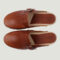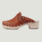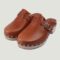 Sabot à bride coup de pied en cuir tannage végétal sur semelle bois.